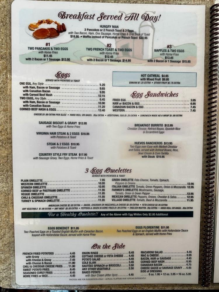 The menu at Village Diner offers a broad range of traditional American dishes. Breakfast includes buttermilk pancakes, hearty omelets, and delicious French toast. For lunch and dinner, guests enjoy everything from burgers to hearty sandwiches. Specialties like the homemade meatloaf and seafood dishes are highlights. Vegetarian options are available, ensuring everyone finds something delightful. Desserts provide a sweet finish, with options like cheesecake and creamy rice pudding. This versatility makes it a perfect spot for any meal of the day.